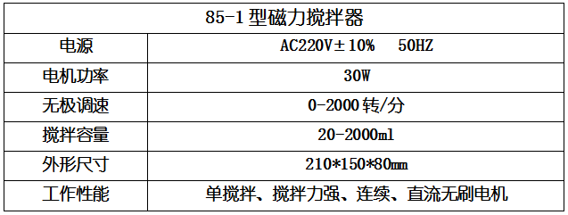 85-2C、HJ型系列恒溫磁力攪拌器采用直流穩(wěn)速電機,無噪聲、無振動、無極調(diào)速,主要提供強粘度常溶液的攪拌,同時具有恒溫加熱裝置,是廣泛用于各大院校、環(huán)保、衛(wèi)生、防疫、石油、冶金、化工、自來水、醫(yī)療等單位的實驗工具。