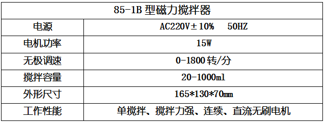 采用國內新款直流電動機,具有轉速穩,噪音小,可連續工作的優點。該機型只作單攪拌,不加熱。攪拌容量可在20ML-1000ML之間,轉速無極可調,不銹鋼工作面經久耐用。